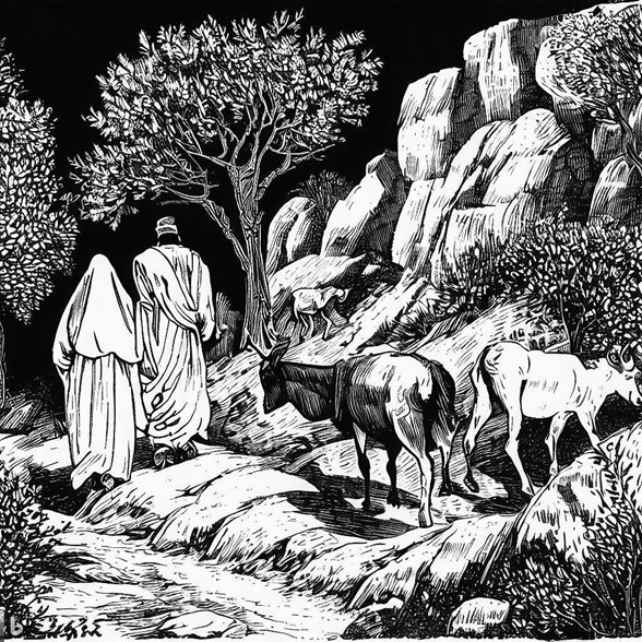 Прямо перед нами плелись два обессиленных от жары осла. На одном из них сидел грузный мужчина лет сорока в темно-синем халате. Он устало смотрел на дорогу, поминутно стирая с лица пот, не в силах даже в очередной раз проклясть тот час, когда решил, несмотря на погоду, поехать в Эммаус. Пару раз он останавливался и, обернувшись, внимательно смотрел на солнце, вероятно, стараясь определить, когда, наконец, спадет жара.