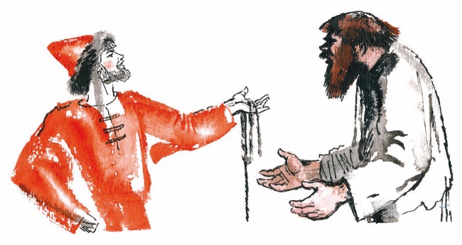 – Как прикажешь, родненький! – молвил чужак. И наложил на Васины руки веревку.