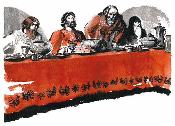 А тот – прямо к великокняжеским палатам. На ходу скатился с коня и в пыльных сапогах, расхристанный, минуя оторопелых слуг, – в трапезную, где пировал великий князь.