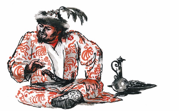Царевич Бадык-оглан благодарит наклоном головы хозяина и продолжает прерванную речь: