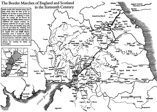 How the frontier society was born and grew, how Border raiding became a systematic thing, how the two governments tried to deal with it, how it fitted into the politics and diplomacy of the two realms and into the social life of the area, and how, almost suddenly, it passed away, is the theme of this book. Some of the stories have been told before, not always accurately; immense scholarship has been applied to various aspects of the subject, and I don’t wish simply to re-tell old tales, or to presume to improve on the researches of eminent historians. But it has seemed to me, knowing something of the Border and its literature, romantic and factual, that the reivers themselves have never been given a history, and that there are still points to be made, and stories to be told, perhaps in a rather different way.
