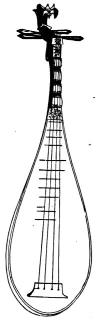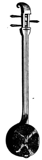 San heen veya üç telli gitar. Siyam ve Tonquin’den muhbirim bu aletin, Çin’e getirilen bir ağaçtan yapıldığını söylüyor; sert ve ağırdır ve kiraz ile armut ağacımızın odununa benzer. Üç telli gitar, doğal gövdesi kahverengi ve sarı bulutlu çizgilerle bölmelere ayrılmış, bronz yılan derisiyle kaplı, davul biçimli silindirik bir gövdeye sahip uzun bir boyun ve kafadan oluşur. Görüyoruz ki yılan derisi, ölümünden sonra melodi çıkarmaya yardımcı oluyor ve karaciğerine tıpta tüccarlar tarafından çok değer verilir ancak yerliler tarafından yapılan açıklamalara güvenebilirsem, eti her zaman yenmez.