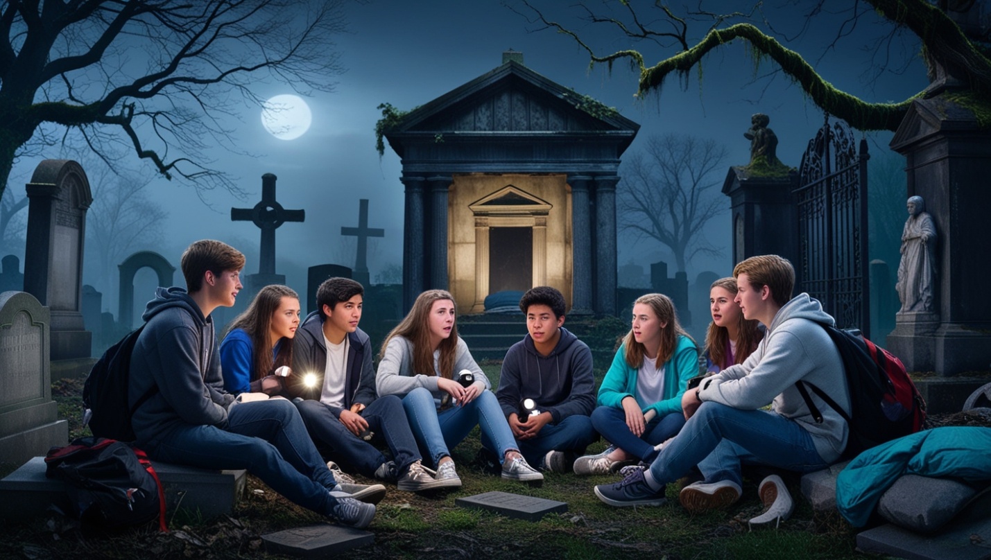 Смех и шутки раздавались по комнате, но в воздухе витало напряжение. Каждый из студентов чувствовал, что это предложение может стать чем-то большим, чем просто игрой. Вскоре обсуждение переросло в план: провести ночь на кладбище, чтобы доказать, что все слухи – лишь выдумка.