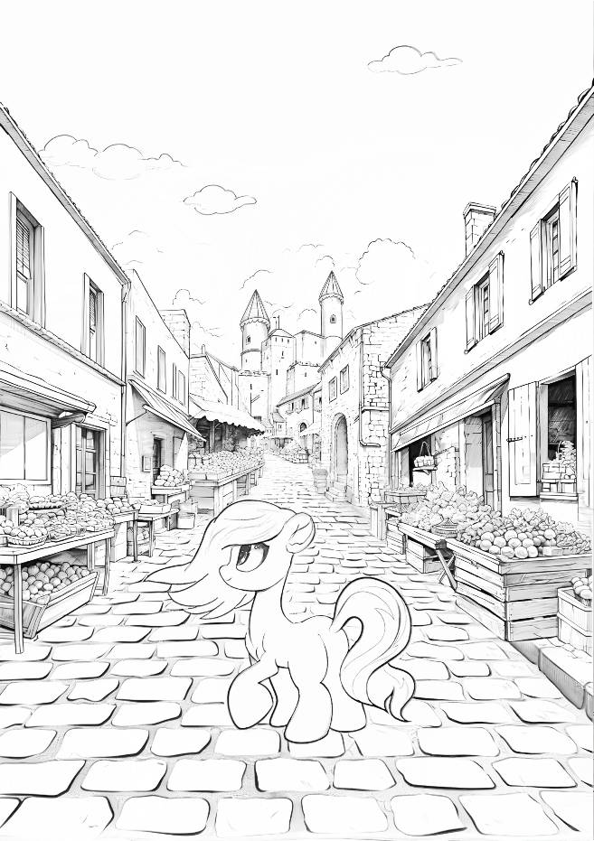 Арон же спокойно блуждал по улице между прилегающими стена к стене двухэтажными кирпичными домами с черепичными крышами, что позвякивали от лап шаловливых воробьев. Посматривая на скачущих мимо фермеров, торговцев, знахарей и патрульных, он напевал про себя задорную песенку. Если он встречал гуляющего дворянина со свитой, то приветственно кланялся, а дворянин одобрительно улыбался и кивал. По переулкам шныряли жеребятки, сражаясь деревяшками то ли от метел, то ли от топоров. Бурогрив заходил в лавчонки и затаривался яблоками, сеном, сахаром, шишками и мятой.