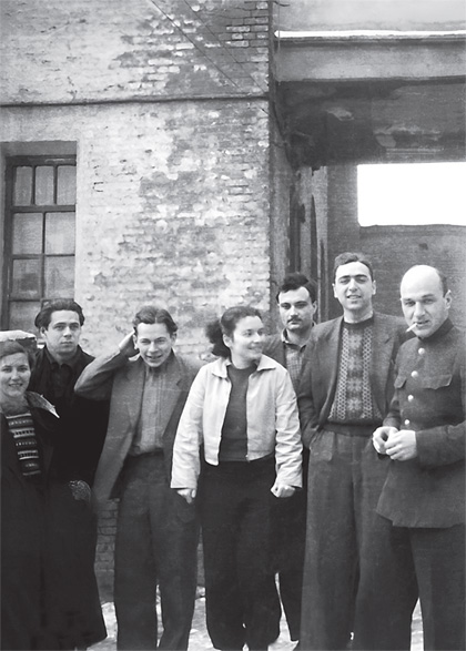 Я и мои сокурсники. 1949 год. Справа налево: Жагар, Жабицкий, я, Сорокина, Лебедев, Алексеев