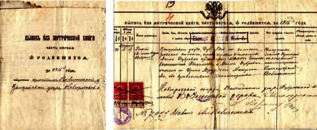 «Выпись из метрической книги. Часть первая. О родившихся за 1916 год. Выданная причтом Вознесенской церкви Валдайского уезда, Новгородской епархии