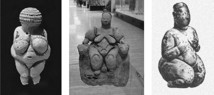 Научная версия происхождения полов в человеческом обществе несколько иная. Исторически исходным по данным археологии и антропологии считается период матриархата – времени на заре человечества, расходящийся с Ветхим Заветом, когда главенствующую роль в жизни социума (стада, рода, племени) играла женщина. Это время относят к этапу собирательства, который существовал наряду с более поздним этапом охоты на животных, которой занимались мужчины. Собирательство было связано с умениями находить съедобные или лечебные плоды, листья и стебли трав или корневища – растительную пищу. А охота предполагала умение ловить зверей, птиц, рыб – животную пищу, а также противостоять чужим племенам. Но основной в первобытном обществе была все же женщина, как матка в улье, производящая остальных членов племени. Значение женщины как прародительницы рода запечатлено в многочисленных дошедших до нашего времени первобытных статуях и статуэтках, изображающих зрелую женщину – «богиню плодородия», «богиню-мать» (рис. 1).