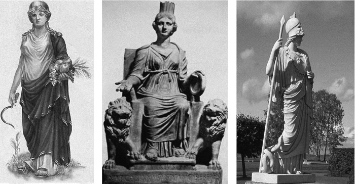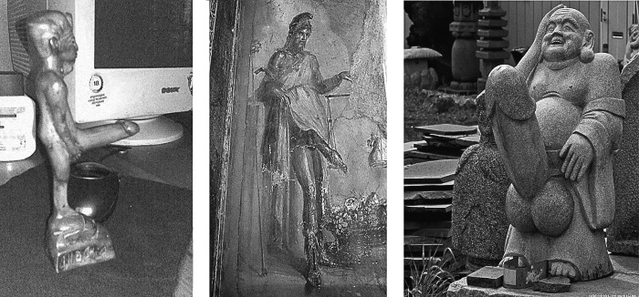 Рис. 2. Боги плодородия: Египет (слева), Древняя Греция (в центре), Япония (справа)