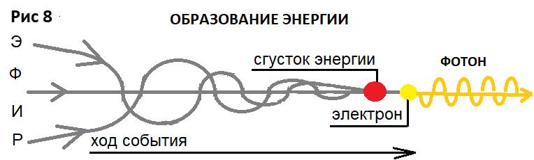 гранул активируется статическое электричество. Дальнейшее усиление вихревого движения эфира, порождает сгусток энергии. Из сгустков энергии, под влиянием Байт-Кода складываются первые микрочастицы; электроны (электроны состоят из эфирных шариков бегающих друг за другом по кругу). Электрон, сбрасывая лишнюю энергию, выпускает световую волну, фотон (с греческого языка, означает свет). К месту: В результате процессов рождения и распада элементарных частиц образуются фотоны. Далее: Фотон, движется в пространстве по граням эфира фрагментами (квант), как свет на гирлянде, из поочерёдно загорающихся лампочек. Резонно предположить, что фотоны, порождённые Божественным воздействием на эфир, и излучаемые пустотами и звёздами, одинаковые по свойству. Обратим внимание на свойства фотона, и его связи с макромиром.