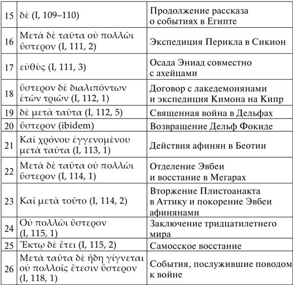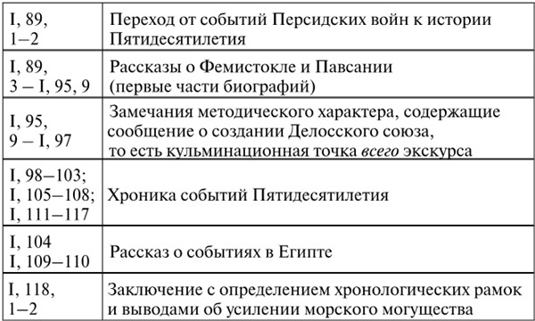 Таким образом, все изложение истории Пятидесятилетия у Фукидида распадается на следующие элементы.