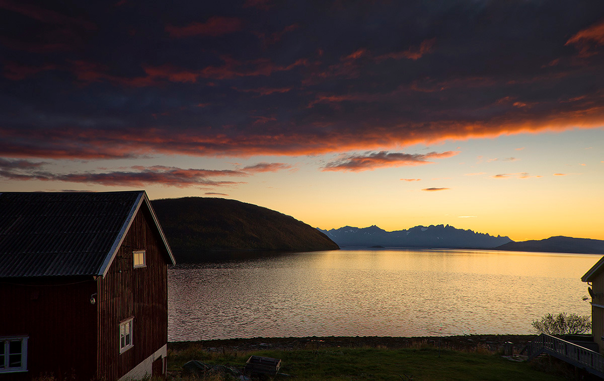 Машина тормознула в промежутке между двух домов. Закат был хорош сам по себе, и первым делом мне захотелось избавиться от переднего плана. Однако норвежские домики напомнили мне наши «очень щелевые общаги» времен комсомольских строек, возводившиеся как временные сооружения, но и полвека спустя не отпускавшие своих пленников. Приглядевшись поближе, понял, что дома тут основательные, ухоженные и напоминают детские рисунки: веселенькие, простенькие, без затей. Левый подмигивал мне окошками, отражавшими свет неба. Его вагонка, выкрашенная финским пинотексом, слегка зеркалила, оживляя мрачноватую поверхность стены. Солнце из-за горизонта лизало малиновыми лучами облако надо мной. Получалась картинка сурового, мрачноватого заката. С моей точки зрения, страна воинственных викингов только так и должна выглядеть.
