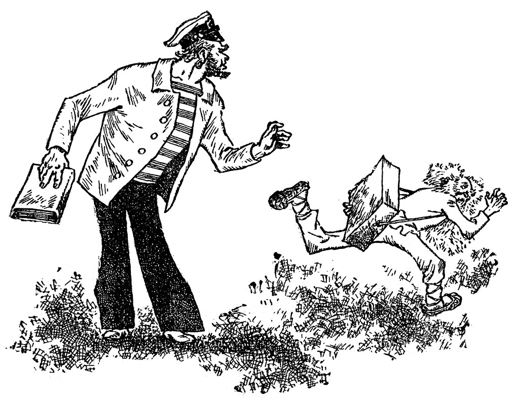 Услышав мой голос, незнакомец перепугался и припустил между деревьями во все лопатки. Задал такого стрекача, что даже выронил книгу, которую держал, оказывается, под мышкой.