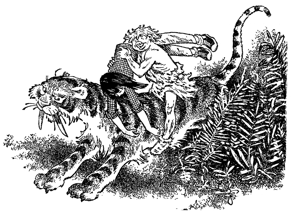 Из леса появился уже знакомый путешественникам саблезубый тигр и подбежал к Барбару. Похититель погрузил всё ещё бесчувственную Марину на тигра, вскарабкался верхом и улизнул из-под самого носа преследователей.
