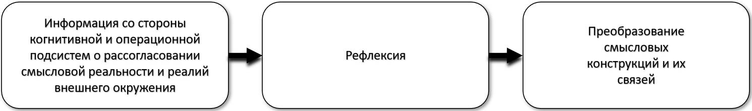 Однако рассмотрение потока воздействий исключительно со стороны смысловой подсистемы в адрес когнитивной и операционной подсистем, широко распространенное в стратегическом менеджменте, является крайне ограниченным, поскольку игнорирует вопросы того, каким образом смысловые конструкции должны обновляться с тем, чтобы не терять своей актуальности (связи с окружающей действительностью).