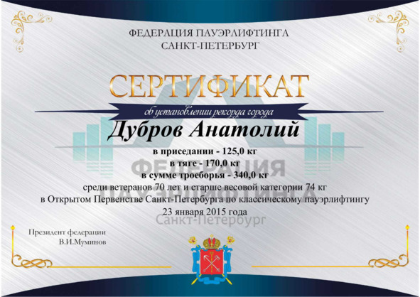 Обладатель 66 рекордов России, 28 Европы и 12 мировых WDFPF, EDFPU, IPF.