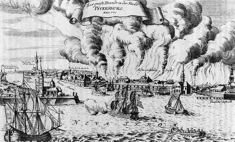 Пожар в Петербурге в 1737 г. Немецкая гравюра