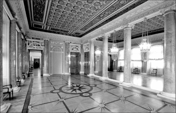 На месте Зеркальной галереи архитектора Ф.Б. Растрелли Воронихиным обустраивается Парадная столовая, или Угловой зал. Благодаря использованию зодчим эффектного приема отражения настенными зеркалами, украшающими всю южную часть помещения и простенки между строгими полуколоннами ионического ордера, созданный по замыслу Андрея Воронихина интерьер Парадной столовой стал выглядеть светлее и просторнее.