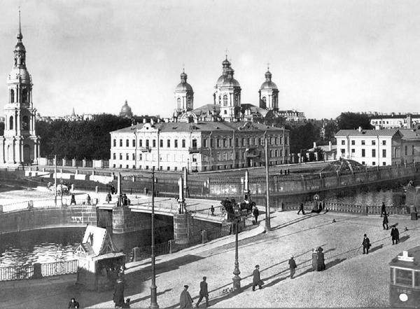 В 1717 году, когда Крюков канал еще только прокладывали, в створе Садовой улицы через водоем перебросили мост, название которому впоследствии дал построенный неподалеку бело-голубой Николо-Богоявленский собор. В 1786 году Старо-Никольский мост стал постоянным трехпролетным сооружением длиной 28 метров и шириной 20,2 метра. Он имел массивные каменные опоры, облицованные финским гранитом, и деревянное балочное пролетное строение.