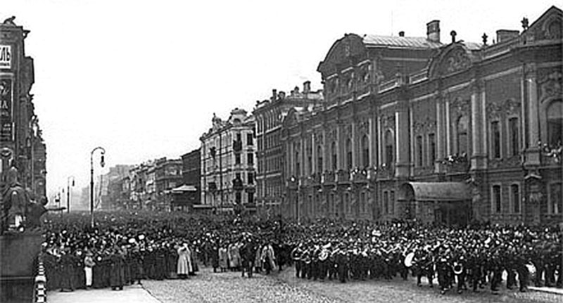 16 апреля 1904 года Петербург встретил возвращающихся с Дальнего Востока офицеров и команды крейсера «Варяг» и канонерской лодки «Кореец». Петербургский градоначальник, генерал-лейтенант И. А. Фуллон, сделал распоряжение, чтобы движение по Невскому проспекту и части Морской улицы прекратилось, за исключением экипажей лиц высокопоставленных. Прочая публика могла занимать только тротуары.