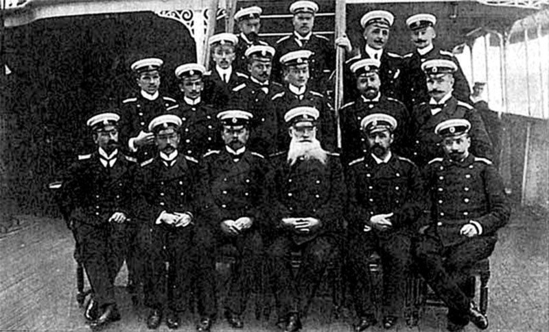 Контр-адмирал Энквист (в центре). Памятный снимок с офицерами крейсера «Алмаз» перед уходом эскадры из Ревеля