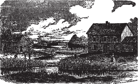 Известный историк и геолог Уильям Китинг, побывавший в Чикаго в 1823 году в составе изыскательской партии, пишет в своих заметках, что поселок представлял «довольно неприглядное зрелище», а его жители «были невежественными, порочными и неприхотливыми существами, не имевшими понятия об элементарных удобствах». То же самое он вполне мог сказать и десять лет спустя, хотя к тому времени Чикаго уже получил официальный статус города. Почти вся сотня городских строений, которые, по воспоминаниям нью-йоркского адвоката Чарльза Батлера, «имели вид убогих и незамысловатых хибар, мало пригодных для проживания», вытянулась вдоль южного берега реки Чикаго, на участке между озером Мичиган и Развилкой. «По степи на юге были разбросаны жалкие лачуги, – писал историк Чикаго А.Т. Андреас, – а на северном берегу, вокруг старого дома Кинзи и на месте современной Кларк-стрит, виднелось несколько, на вид более крепких, но таких же неказистых и некрашеных домишек. Все вместе… представляло весьма тоскливое зрелище даже для такого занюханного приграничного городка. Над многими крышами не было даже печных труб… Все здания очень приземистые, ни одно из них не насчитывает более двух этажей. Если подъезжать к городу с юга, то сначала появляются дубовые кроны… ровные заливные луга, справа виднеется озеро, а вдоль главного русла реки цепочкой вытянулись стволы деревьев, у подножия которых стелется печной дым из лачуг, размывающий всю картину, и четко выделяется лишь развевающийся над фортом флаг. Одна грунтовая дорога, коричневой полосой выбитая в траве, ведет к воротам форта, а другая – разбитая еще глубже и шире – через степь к Развилке, к процветающей в те дни гостинице «Соганаш».