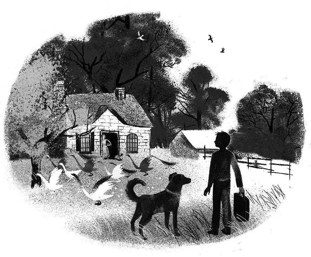 Было уже поздно и начинало темнеть. Он откинулся – почти разлёгся – на сиденье и, может быть, заснул бы, если бы поезд не останавливался у каждой кучки домиков, больше похожих на сараи, окружённых маленькими хозяйствами, раскинувшимися по обе стороны путей. Остановки были короткие, но на каждой часть пассажиров сходила – обычно солдаты, раненые и здоровые, – и заходили другие, обычно старые женщины с видавшими виды фермерскими вёдрами, наполненными едой, которую они раздавали пассажирам. Одна из них дала мальчику два яйца, сваренных вкрутую, и сэндвич с большими кусками мяса, толстыми ломтями домашнего хлеба и солёного сала, которое на вкус было как масло. Этого хватило бы на двоих таких мальчиков. Ещё она дала ему целую банку тёплого молока со сливками. Может, даже с сахаром или с мёдом, настолько оно было сладкое. Мальчик съел часть сэндвича, отпил молока, закрутил банку и завернул остатки сэндвича в газету, которую нашёл на сиденье перед собой. Потом он затолкал остатки еды в угол соседнего сиденья так, чтобы банка не перевернулась, откинулся на своём сиденье, закрыл глаза и тут же уснул.