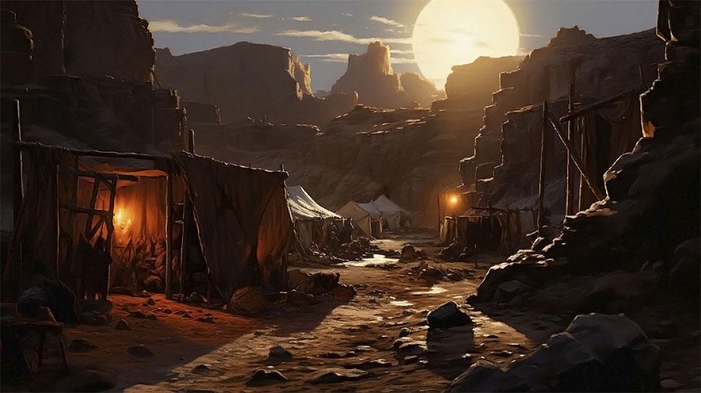 Колокол прозвонил единожды. Мужчины зашевелились, подобно единому организму. Каждый знал, что, где и как ему делать. Добытчики похватали кирки, молоты, лопаты, телеги и принялись за работу. Палящее солнце окутало их, словно родных Полевой штиль, пекло и гиперактивная работа мужчин, ничего нового. Продолжительное время спустя прозвучали два заветных удара, и лязг инструментов прекратился. Первый перерыв. Собравшись у повозки возле палаточного городка, трудяги взяли еду, воду и принялись трапезничать.