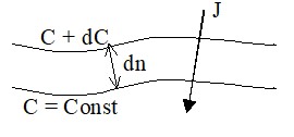 Рассмотрим поток вещества J в пространстве (Рис. 1.3). Концентрация вещества С изменяется в пространстве и во времени т. е.