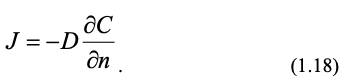 Поток вещества J, отнесенный к единице поверхности S в этом случае будет пропорционален градиенту концентрации: