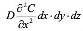 Аналогично определяется изменение количество вещества вдоль остальных осей. Суммарное изменение количество вещества, в пересчете на единицу объема, вдоль всех координат должно быть равно изменению его концентрации во времени: