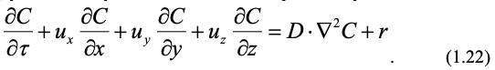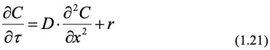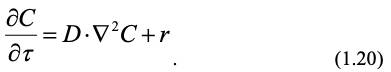 Выражение в скобках в уравнении (1.19) является оператором Лапласа. С учетом его сокращенного обозначения и образования вещества за счет химической реакции при скорости образования r получим для выражения (1.19):