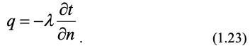Уравнение (1.25) является следствием закона Фурье и также называется его именем. Оно определяет поле температур для молекулярного переноса тепла в рассматриваемой среде.