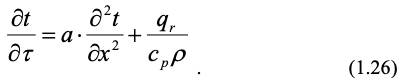 Выражение в скобках в уравнении (1.24) является оператором Лапласа, с учетом его сокращенного обозначения и дополнительного источника тепла qr, например, за счет химической реакции, с введением коэффициента температуропроводности а = / ср ρ, получим для выражения (1.24):