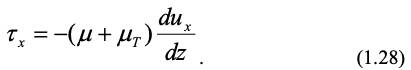 Можно показать [6], что в этом случае система уравнений Навье-Стокса формально останется той же (1.10), но вместо ньютоновской вязкости μ необходимо подставить в нее сумму ньютоновской и турбулентной вязкости μт.