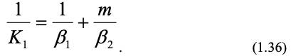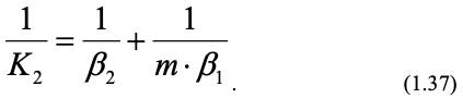 Физический смысл соотношения (1.36) заключается в том, что общее сопротивление процесса массопередачи через межфазную поверхность 1/К1 равно сумме сопротивления переноса вещества от 1-й среды к межфазной поверхности 1/1 и сопротивления переноса вещества от межфазной поверхности ко 2-й среде m/2.