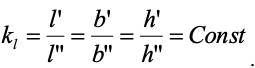 Соотношения между сходственными величинами образца и модели называются константами (масштабами) подобия. Так для геометрического подобия – подобия геометрических размеров образца (l’ – длина, b’– ширина, h’– высота) и соответствующих размеров модели – l”, b”, h” получим константу геометрического подобия
