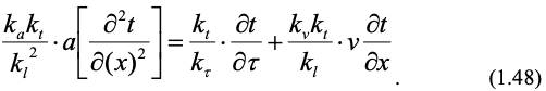 При переносе тепла в движущейся среде имеет место конвективный перенос и перенос за счет молекулярной диффузии. Тогда вместо частной производной температуры по времени в уравнении (1.25) надо писать полную производную, учитывающую и конвективный перенос. С учетом этого для (1.25) получим