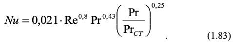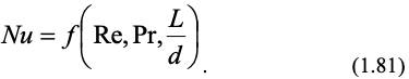 Теплоперенос. Рассмотрим примеры описания стационарного теплопереноса в трубах и каналах (внутренняя задача) критериальными уравнениями. В этом случае общая критериальная зависимость (1.60), в пренебрежении влиянием силы тяжести, записывают в следующем виде (отсутствуют критерии Грасгофа, Фурье и гомохронности):