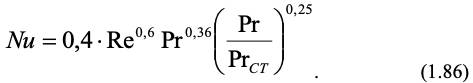 Для стационарного теплопереноса при обтекании тел (внешняя задача) вид зависимости (1.83) сохраняется. Так при перпендикулярном обтекании коридорных и шахматных пучков труб при Re 1000 используется уравнение: