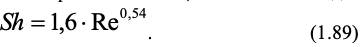 Конкретный вид зависимости (1.88), например, для адсорбции на насыпном активированном угле с размером частиц 1,7-2,2 мм при средней скорости потока 0,3-2 м/с имеет вид