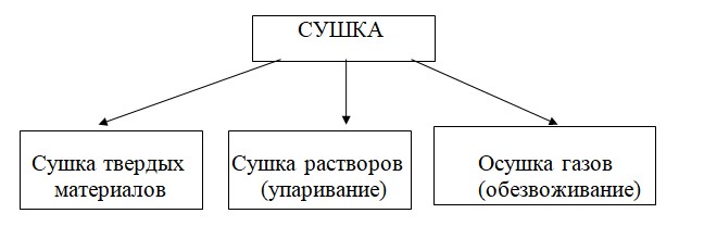 Рис. 1.7 Виды сушки материалов различного агрегатного состояния.