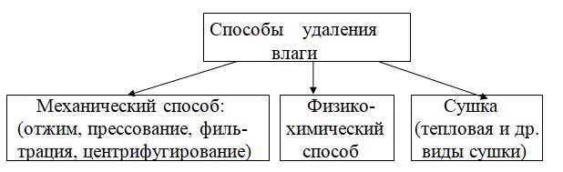 Влага из материалов может быть удалена различными способами: 1) механическим: 2) физико-химическим; 3) собственно сушкой.