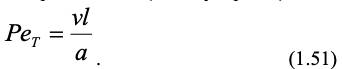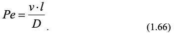 Из второго равенства выражения (1.64), подставив значения констант подобия, получим другой безразмерный комплекс – диффузионный критерий Пекле, который представляет собой отношение массопереноса за счет движения среды (конвективный) и за счет молекулярной диффузии (молекулярный)