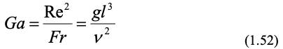 Так как в критерии Fr и Re входит скорость, используется их комбинация – критерий Галилея, не содержащий скорости: