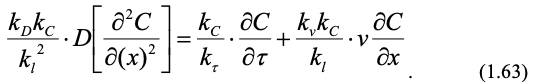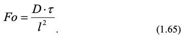 Из первого равенства выражения (1.64), подставив значения констант подобия, получим безразмерный комплекс – диффузионный критерий Фурье, который характеризует изменение молекулярного массопереноса во времени
