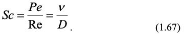 При сочетании критерия Ре с критерием Re получим критерий Шмидта (в отечественной литературе его часто называют диффузионным критерием Прандтля), характеризующий соотношение молекулярного переноса количества движения и молекулярной диффузии или соотношение полей скоростей и концентраций:
