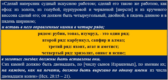 Цитата Книги Исход 28:15-21 по Синодальному переводу