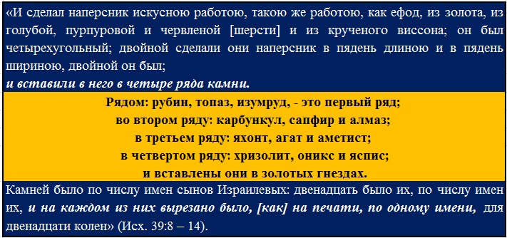 Цитата Книги Исход 39:8-14 по Синодальному переводу