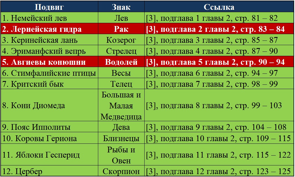 Хотя есть и «смельчаки». К таковым (при всём уважении к научным заслугам) относится, например, теософ первой половины XX века, продолжатель дела Блаватской Е.П., Алиса А. Бейли с работой «Подвиги Геракла. Астрологическая интерпретация» [2]2, в которой устанавливается следующая хронология подвигов: