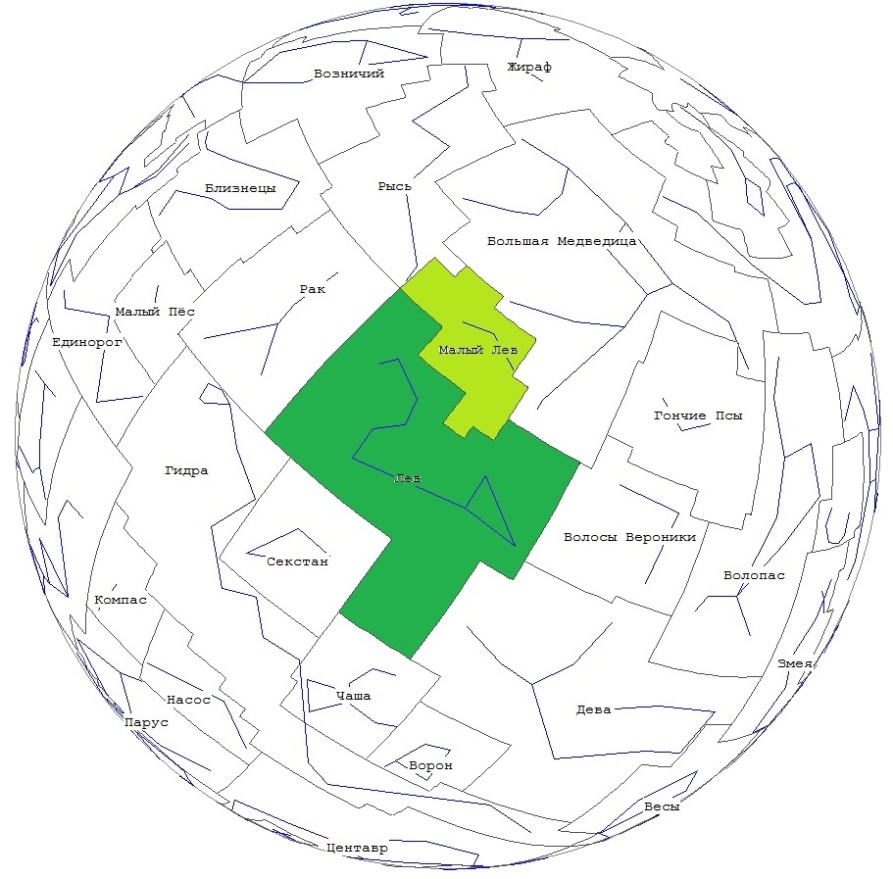 Астрономический аспект мифа. В северной части неба соседствуют два созвездия – Лев (зодиакальное) и Малый Лев.